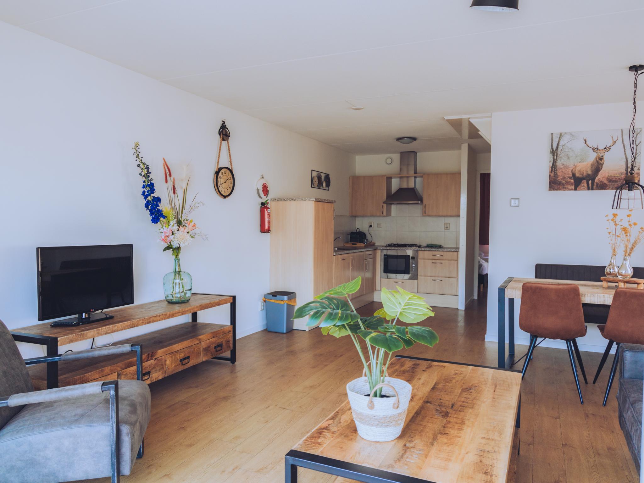 Begane grond: (woonkamer(TV(kabel, flatscreen, Nederlandse zender(s), Duitse zender(s), internationale zender(s)), eettafel, zithoek, DVD-speler, radio, CD-speler), keuken(kookplaat(4 kookplaten, gas), waterkoker, afzuigkap, koffiezetapparaat(cups), koffiezetapparaat(filtermaling), combimagnetron, afwasmachine, koel-/vriescombinatie), slaapkamer(2x 1-pers. bed(boxspring, 90 x 200 cm)), badkamer(ligbad, douche, wastafel), toilet(wc), wasruimte(wasdroger, wasmachine))
