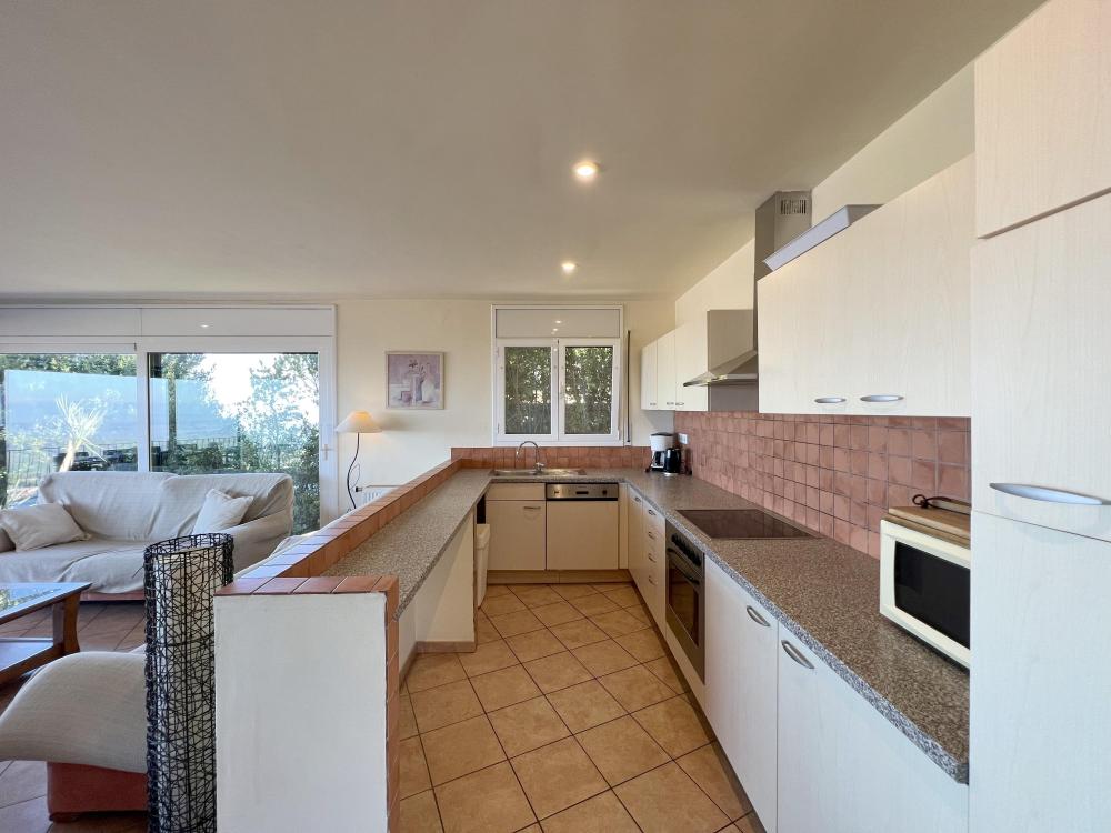 Verdeeld over 2 verdiepingen. Op de begane grond vinden we de garage, het zwembad en een grote tuin met uitzicht op het dorp, de zee en de Pyreneeën.