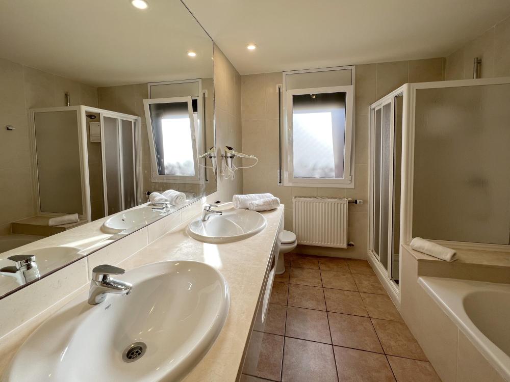 Het huis bevindt zich op de eerste verdieping, met een grote woon-eetkamer en een keuken met toegang tot een terras waar u kunt genieten van maaltijden met het beste uitzicht. Verder zijn er vijf tweepersoons slaapkamers met inbouwkasten en drie badkamers (één met ligbad en één met wasruimte).