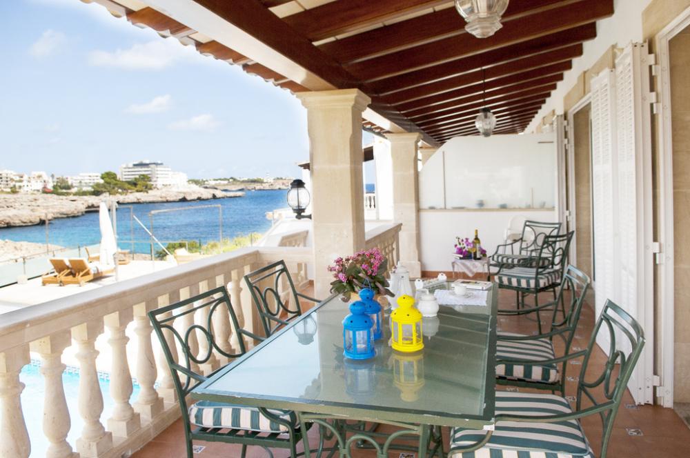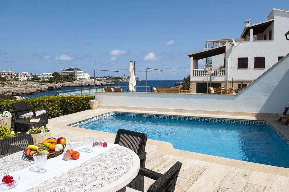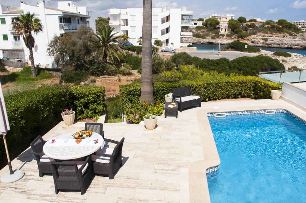 Casa Porto Colom is een half-vrijstaande villa ideaal voor vakantie met familie / vrienden. Het is verdeeld over twee verdiepingen en heeft gedeeltelijk kust en zeeuitzicht vanaf het overdekte terras en drie slaapkamers.Vanuit de hal is er toegang tot de open en lichte woon / eetkamer met openslaande deuren naar het overdekte terras dat gedeeltelijk uitzicht op zee geniet.Ook op deze verdieping een- keuken, een badkamer met een bad. De trap leidt naar de bovenste verdieping waar u drie slaapkamers heeft.De master bedroom met een tweepersoonsbed, toegang tot een klein balkon met uitzicht op zee en een eigen badkamer met hydromassage bad. De andere twee slaapkamers hebben twee 1-persoonsbedden (opgesteld als 2-persoonsbed) waarvan een met een klein balkon met uitzicht op zee. De twee slaapkamers delen een aparte badkamer met hydromassagebad.Vanuit de woonkamer is er toegang tot het overdekte terras met een tafel en stoelen om buiten te eten met uitzicht op het zwembad en de open zee te genieten. Vanaf het overdekte terras met een trap naar beneden naar het mooie zwembad. Zonneterras aan de ene kant van het zwembad met ligbedden; de perfecte plek om te genieten van de lange zomerse dag. Er is ook een tafel, stoelen, een draagbare barbecue en een tafeltennistafel voor de lol van het hele gezin. Vanaf het zwembad door een hek, er is een klein pad dat via de rotsen naar zee gaat.Casa Porto Colom is slechts 200m gelegen van het mooie zandstrand van Cala Marsal. In de omgeving is er een kleine supermarkt en een paar restaurants met uitzicht op het strand.