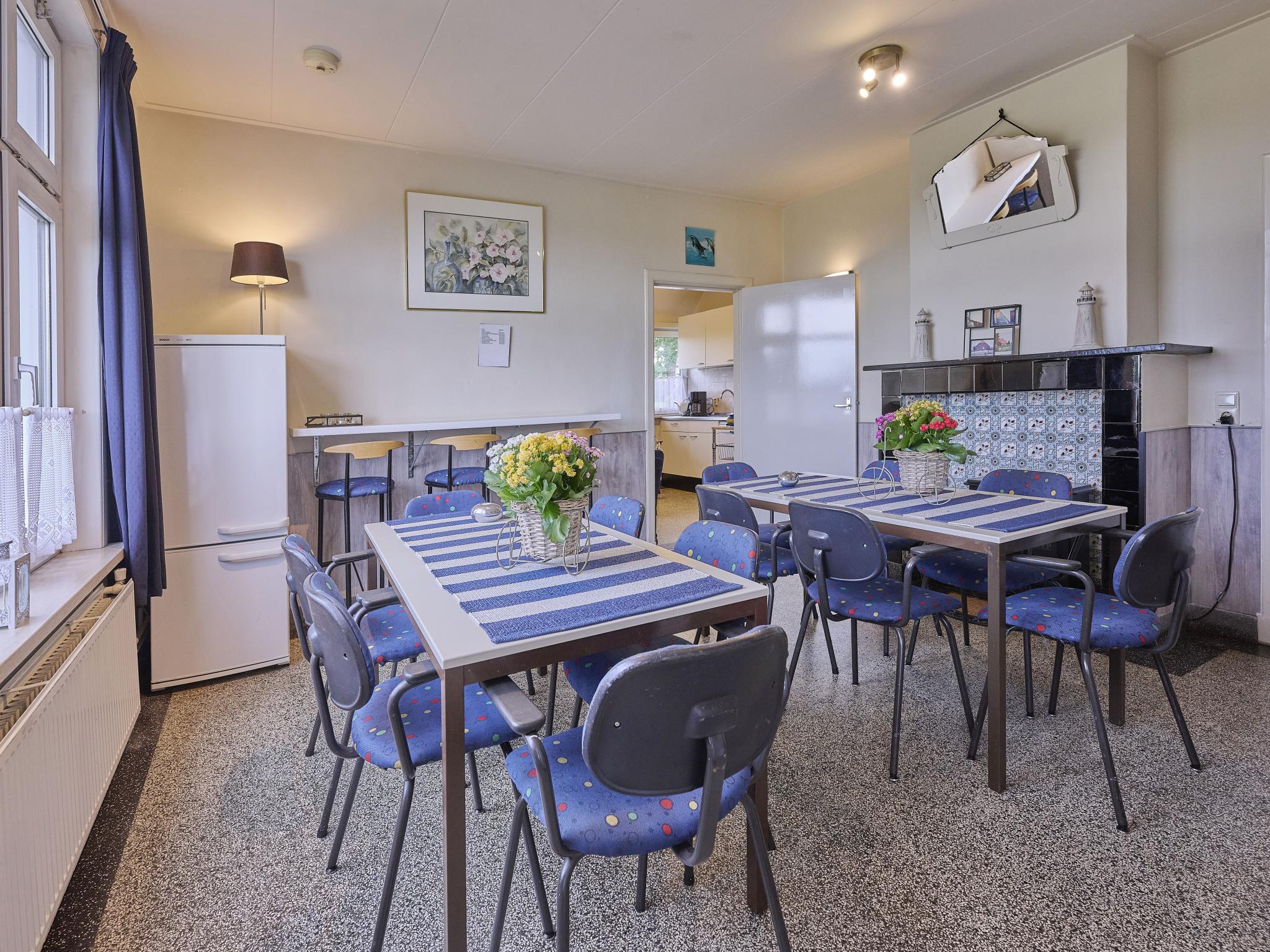 Begane grond: (woonkamer(TV(flatscreen, smart TV), sfeerhaard, 2x zithoek, DVD-speler, stereo-installatie), eetkamer(2x eettafel, koel-/vriescombinatie), keuken(eettafel, kookplaat(5 kookplaten, gas), waterkoker, afzuigkap, koffiezetapparaat(pads), koffiezetapparaat(filtermaling), oven, magnetron, afwasmachine, koelkast), slaapkamer(2-pers. bed(160 x 200 cm)), slaapkamer(2-pers. bed(160 x 200 cm)), slaapkamer(2-pers. bed(2 éénpersoonsbedden, 90 x 200 cm)), slaapkamer(2-pers. bed(2 éénpersoonsbedden, 90 x 200 cm)), slaapkamer(stapelbed(90 x 200 cm)), badkamer(bad met douche, wastafel, wc, wasmachine), toilet(wc))
