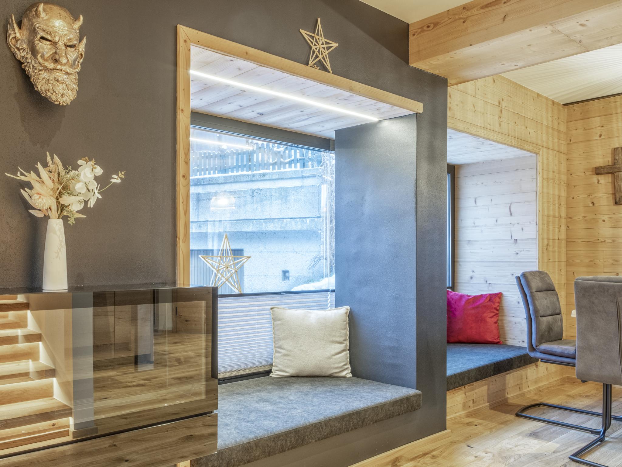 Grote raampartijen laten het licht rijkelijk binnenstromen en bieden een prachtig uitzicht op de omliggende bergen en het dorpsleven. De brede vensterbanken nodigen uit om met een Glühwijntje van het nazonnetje te genieten. Na een actieve dag in de bergen is het heerlijk ontspannen in de eigen Finse sauna – ongetwijfeld een van de favoriete plekjes van dit huis. En dat alles midden in het dorp, op loopafstand van uitstekende Oostenrijkse restaurants en andere voorzieningen. De auto kan je laten staan. De skibus stopt voor de deur, hoewel je binnen tien minuten bij de skilift bent. De eigenaar kan je de mogelijkheid aanbieden om gebruik te maken van een ontbijt of half pension bij het tegenoverliggende restaurant.