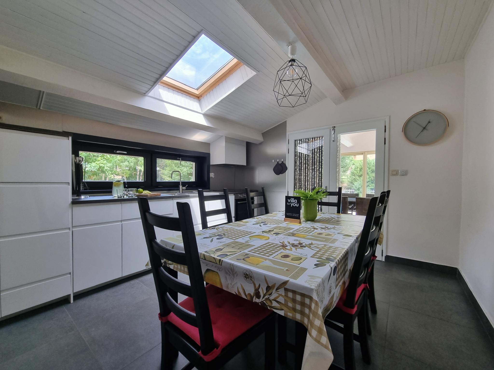 Begane grond: (woonkamer(TV, open haard, zithoek), keuken(eettafel, waterkoker, fornuis(3 kookplaten, elektrisch), oven(elektrisch), magnetron, koelkast), slaapkamer(2-pers. bed(2 éénpersoonsbedden, 2 x 1 persoons dekbed, dons, 160 x 200 cm)), slaapkamer(2-pers. bed(2 éénpersoonsbedden, 2 x 1 persoons dekbed, dons, 160 x 200 cm)), slaapkamer(2-pers. bed(2 éénpersoonsbedden, 2 x 1 persoons dekbed, dons, 160 x 200 cm), airconditioning), doorloop slaapkamer(stapelbed(dekbed, dons, 90 x 200 cm)), badkamer(douche, wastafel, wc), badkamer(douche, wastafel, wc), bijkeuken(koffiezetapparaat(espresso), afwasmachine, koelkast, vriezer, wastafel, wasmachine))