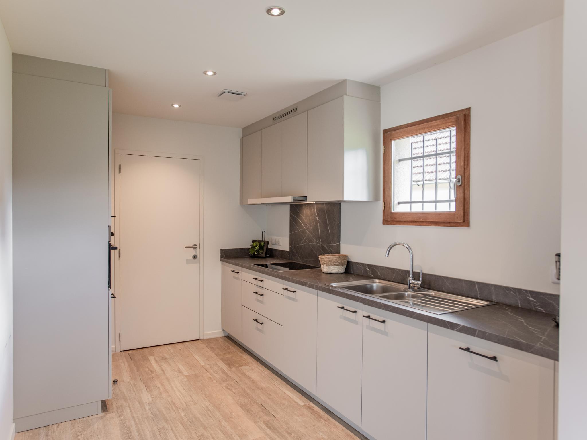 Begane grond(eigen entree): (open keuken(fornuis(4 kookplaten, elektrisch), afzuigkap, koffiezetapparaat(filtermaling), oven(elektrisch), magnetron, afwasmachine, koel-/vriescombinatie), woon/eetkamer(TV(digital), eettafel, zithoek), slaapkamer(2-pers. bed), badkamer(douche, wastafel, wc))