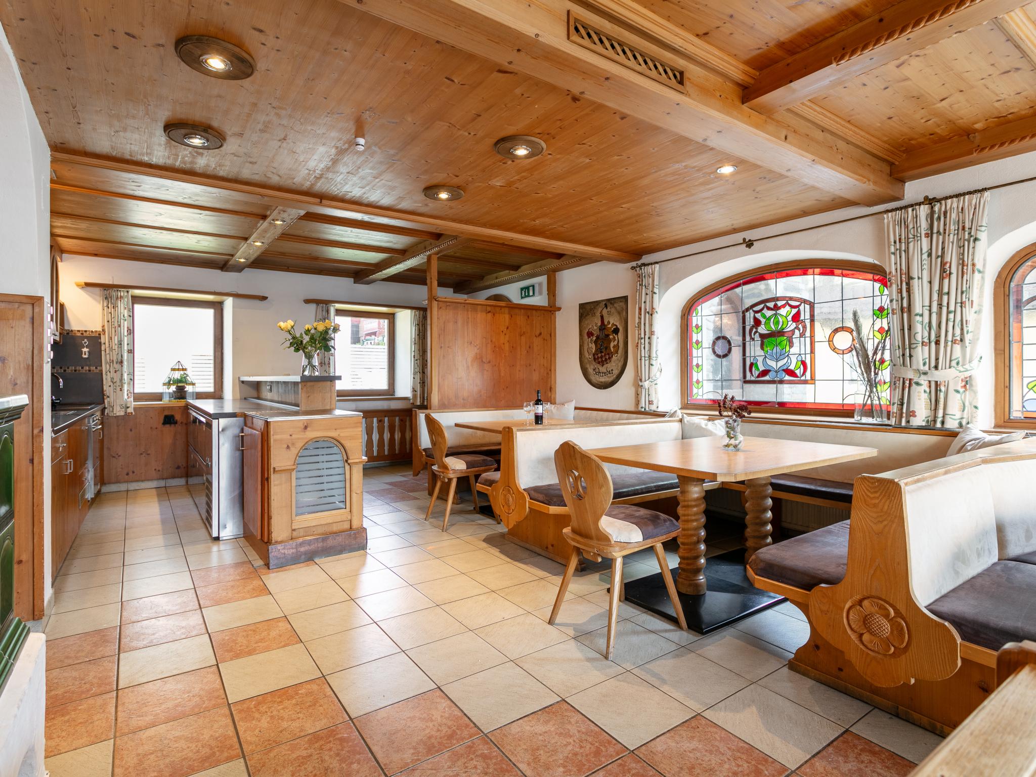 Dit charmante groepshuis biedt plaats aan maximaal 18 personen. In Tiroolse stijl wachten 9 ruime kamers en 9 vintage badkamers op je. Een hoogtepunt is de grote eetkamer met bar en tv als lounge. Je kunt je uitleven in de volledig uitgeruste keuken. Geniet van zonnige uren op het balkon of terras en profiteer van de centrale ligging in Kirchberg. Restaurants, bars en de skibus (270 m) liggen op slechts een paar minuten afstand