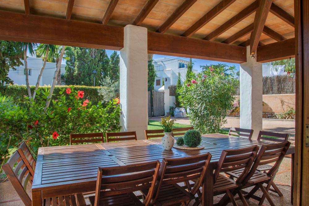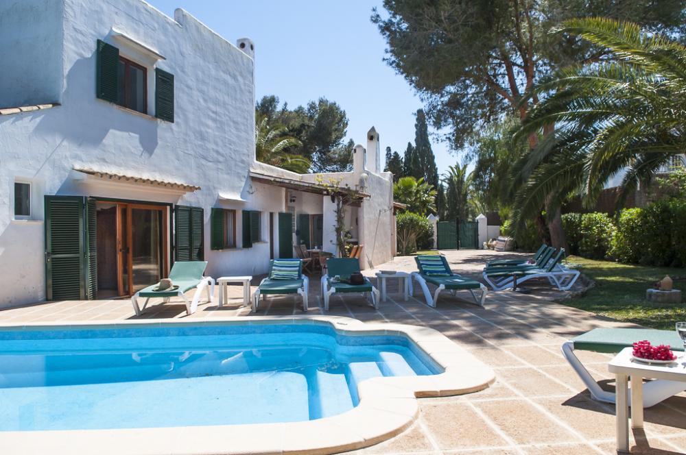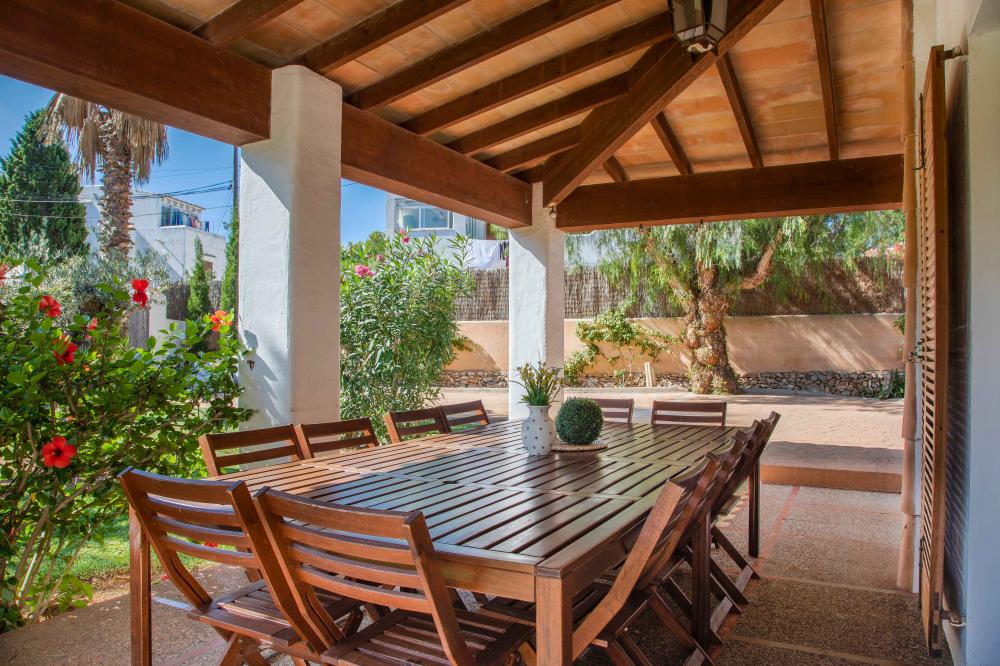 Villa Cala Ferrera is een charmante Ibiza stijl villa met een mooie combinatie van antiek en modern. Het heeft een goed onderhouden volgroeide tuin en veel buitenruimte.De begane grond biedt een open woon- / eetkamer vol van karakter, met toegang tot het overdekte terras aan de voorzijde en het terras aan de zijkant.. De keuken die goed is uitgerust heeft ook toegang tot het terras aan de kant van het zwembad.