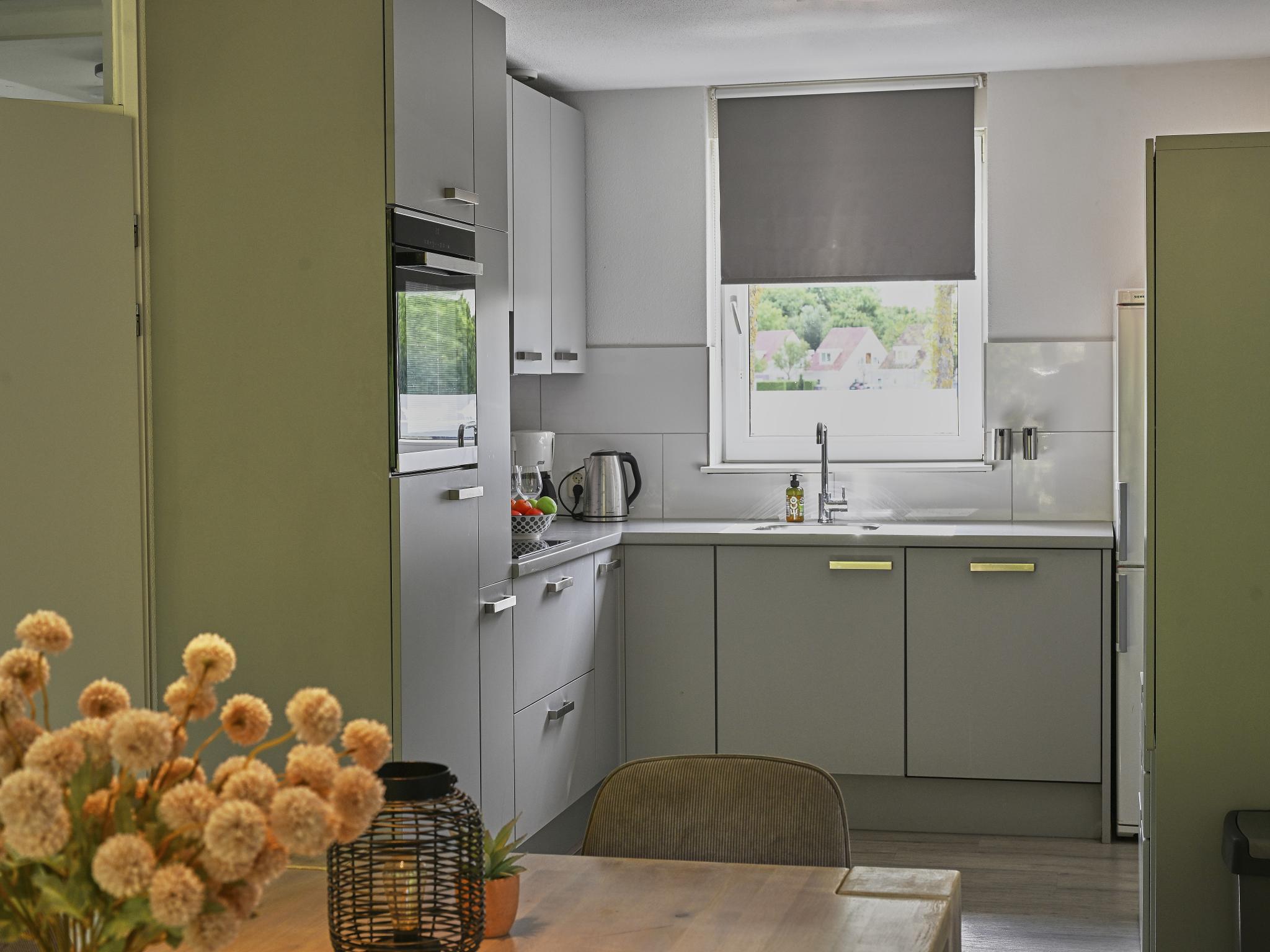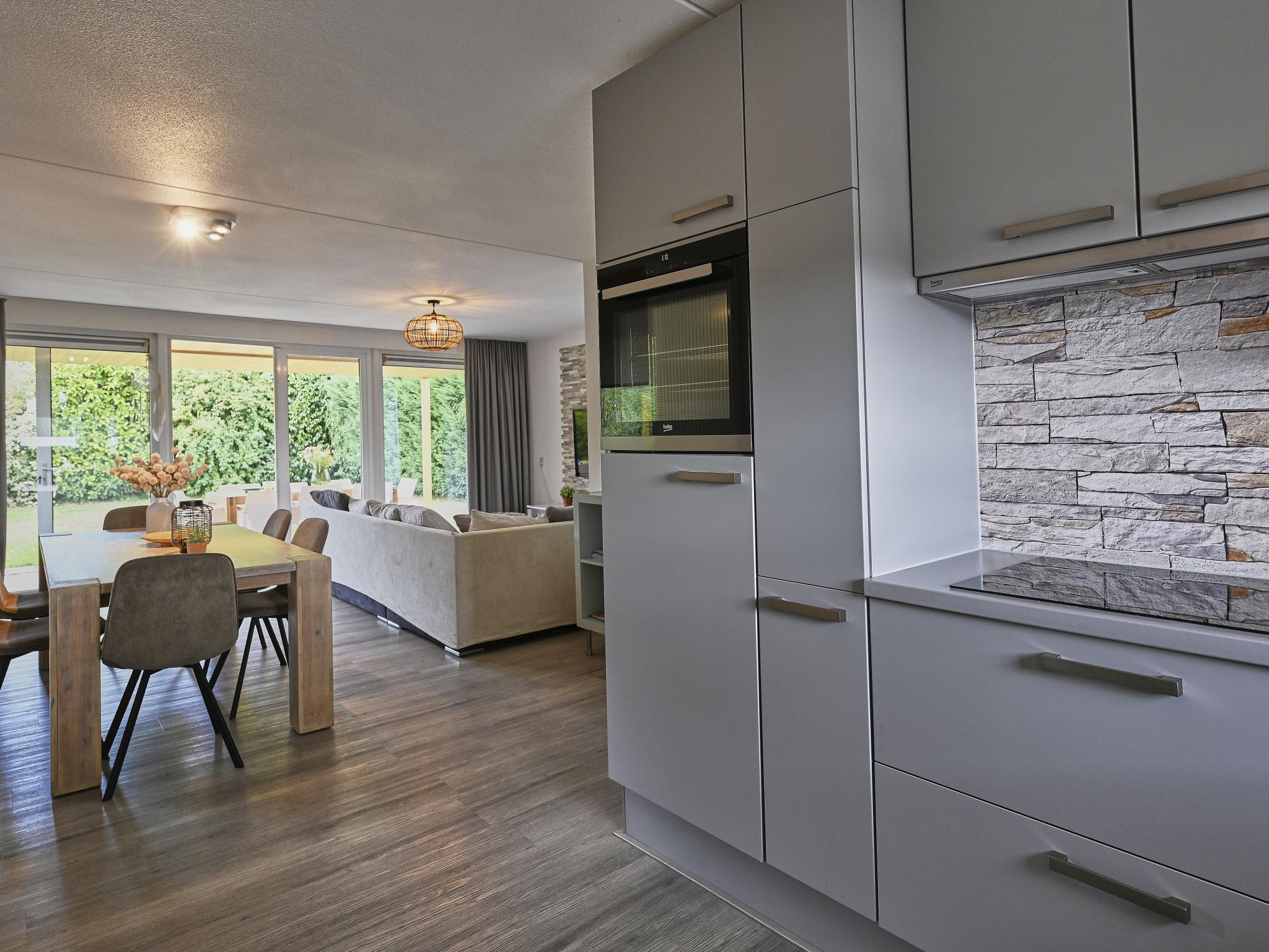 Begane grond: (keuken(waterkoker, koffiezetapparaat(pads), combimagnetron, afwasmachine, koelkast, vriezer, koel-/vriescombinatie), woon/eetkamer(TV(digital)), badkamer(douche, wastafel, wc))