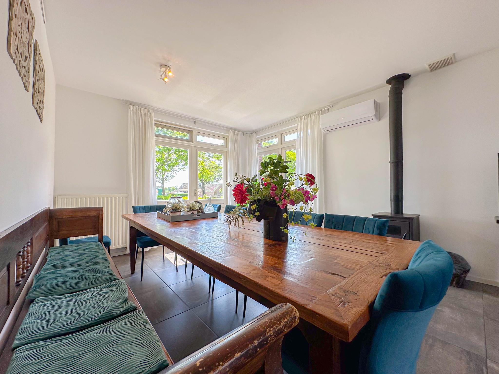 Dit luxe vakantiehuis ligt landelijk. Waar je ook uit het raam kijkt, je ziet landerijen, schapen en bomen. Geniet van de rust en alles wat dit huis te bieden heeft. Zo is er een fijne woonkamer met houthaard, in de tuin staat de bubbelbad klaar en in het souterrain de sauna en luxe badkamer. Kinderstoel, kinderbed en traphekje zijn aanwezig. En er staat een grote trampoline in de volledig omheinde tuin. Bij mooi weer kun je gezamenlijk eten onder de overkapping op het terras. Wat wil je nog meer!